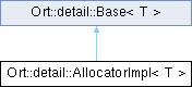 Inheritance diagram for Ort::detail::AllocatorImpl< T >: